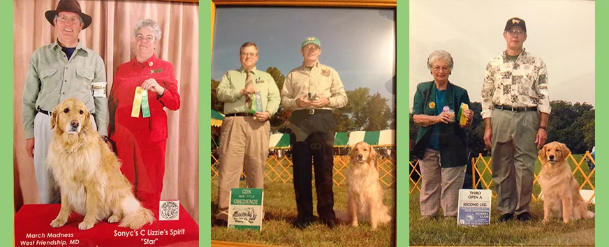 Military commands? While Donald Greenfield experienced similar commands after enlisting in the Army fifty years ago, in this story, these particular words, accompanied by “Sit”, “Down”, “Stay”, “Stand” and some form of Recall, are more appropriate for competing his dogs in American Kennel Club (AKC) Obedience Trials. These commands form part of a dog’s “basic training”, so to speak – and Donald undertook obedience training his dog Star after an accident left him a below knee amputee twenty years ago. After twenty-six years as a brakeman and conductor for the CSXT railroad, he retired following his accident, but wanted to stay active. His wife Robin suggested that training their Golden Retriever would allow him to do just that in a new way. He thought that would be fun, so Donald signed Star up for a class at Catoctin Kennel Club of Point Of Rocks, MD. She was a natural, and they did very well by earning a Utility Title.